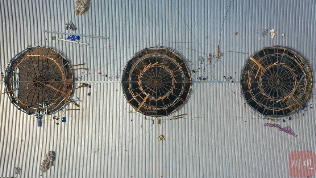 2月20日,泸州高铁站项目施工现场一片繁忙,3万多平米的屋顶上,绑着安全绳的工人正在铺设屋顶面板、焊接采光雨棚框架;主体站房外部,幕墙龙骨安装已进入尾声,车站功能用房内部装修也在同步进行。