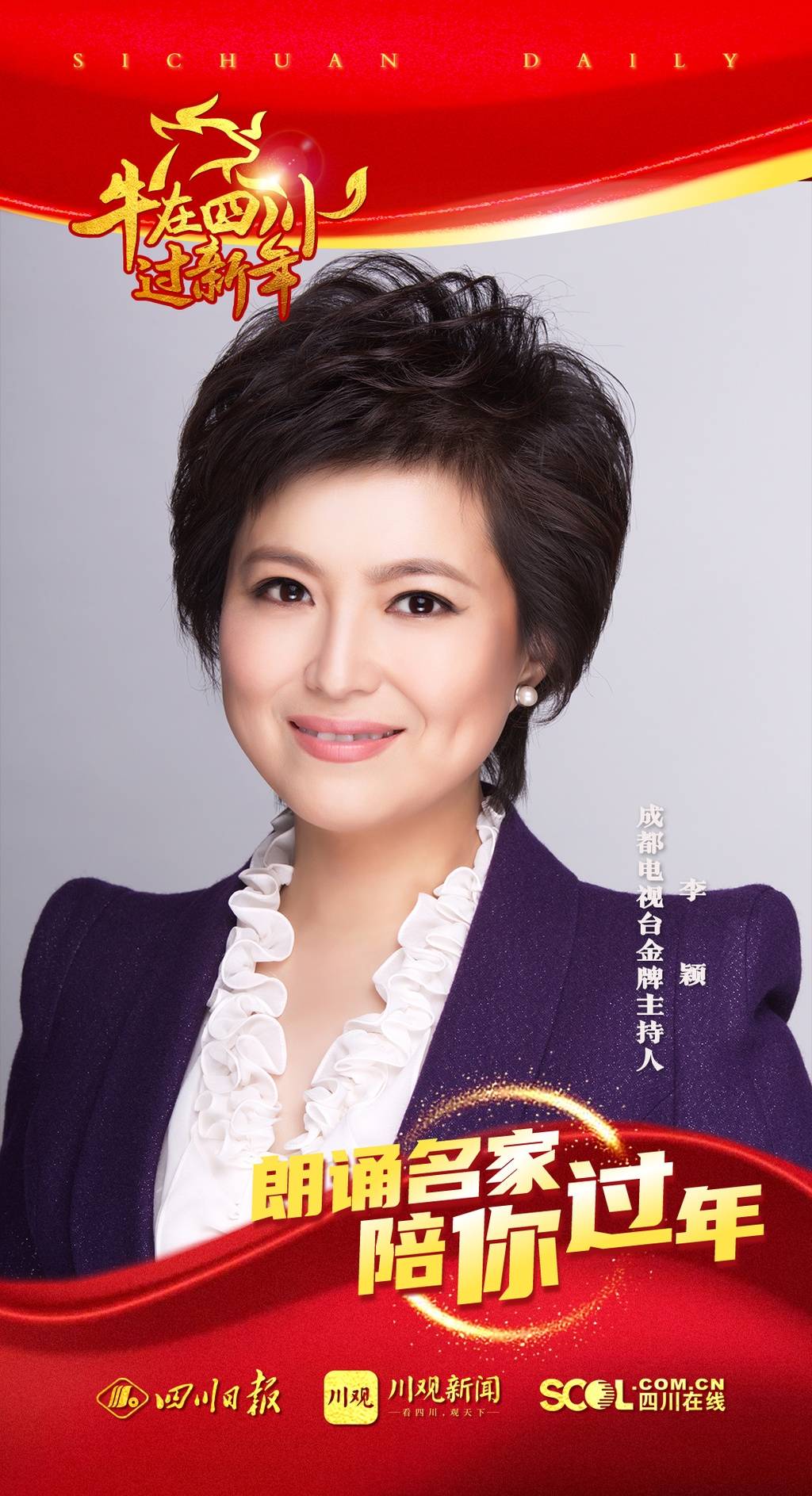 李颖,成都电视台金牌主持人、第九届全国“德艺双馨电视艺术工作者” 、第九届四川省“十佳电视艺术工作者”、四川省首届十佳电视节目主持人、成都市优秀女新闻工作者、成都市第一批“全民阅读推广公益形象大使”。