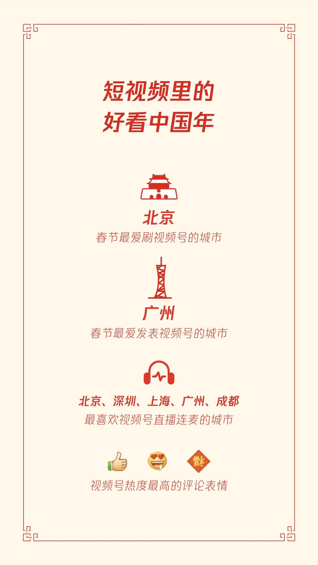 微信红包和视频号相结合的新玩法,也为春节提供了不少新趣味。春节前释出的红包封面开放平台支持视频号个人创作者定制专属红包封面的能力,让设计和收集红包封面成了全民参与的“新年俗”。《报告》显示,微信用户人均拥有7.37个红包封面,春节期间,微信红包封面开放平台共上架3000万款红包封面。