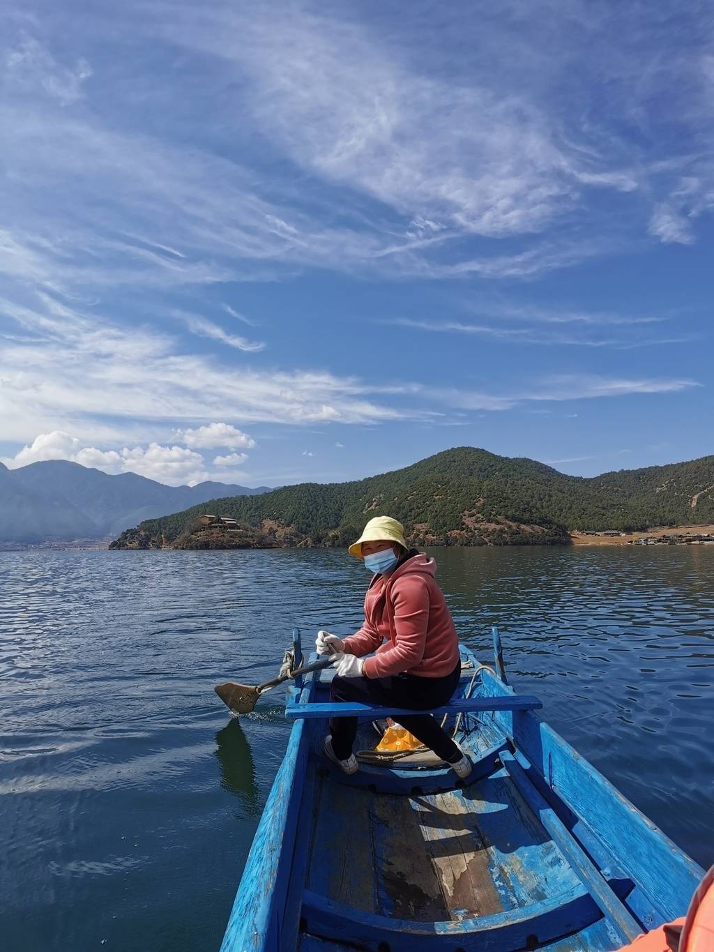 船娘叫甲初德玛,摩梭人。与当地人一样,她家吃的是“旅游饭”。靠一艘猪槽船,甲初德玛去年收入12万多,供养起两个孩子生活读书。