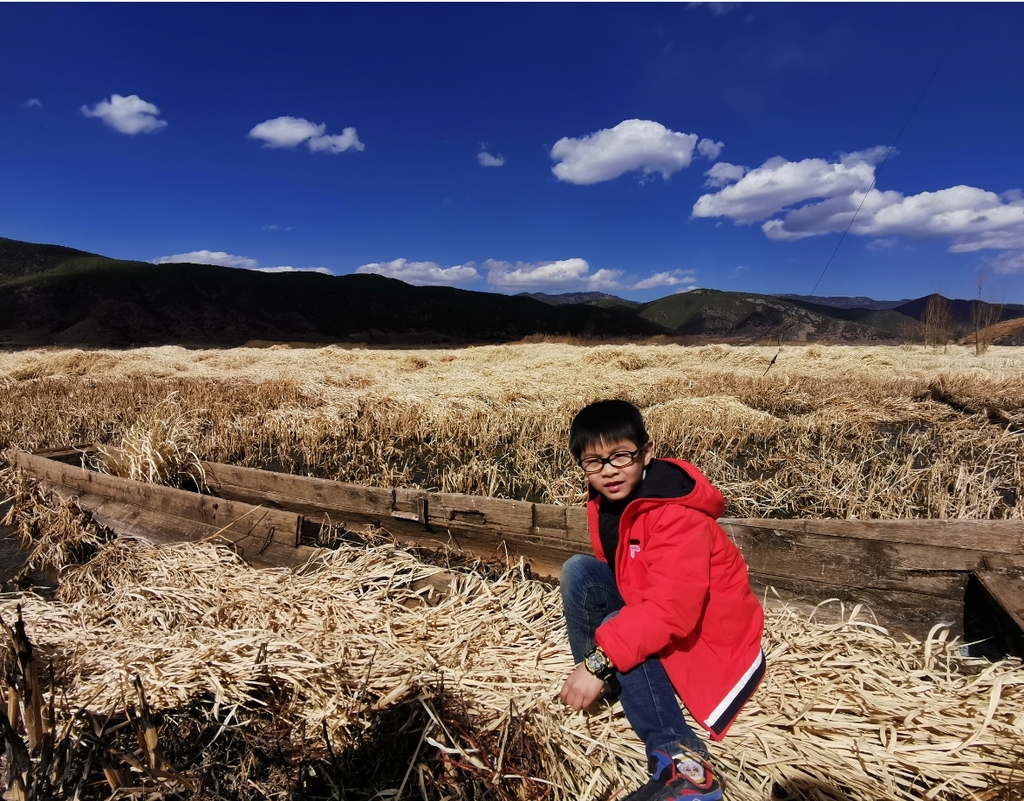 停车、上船。猪槽船穿行在泸沽湖草海间,冬日的草海一望无边,但芦苇枯黄。记者随手摘一枝,很干、很脆。