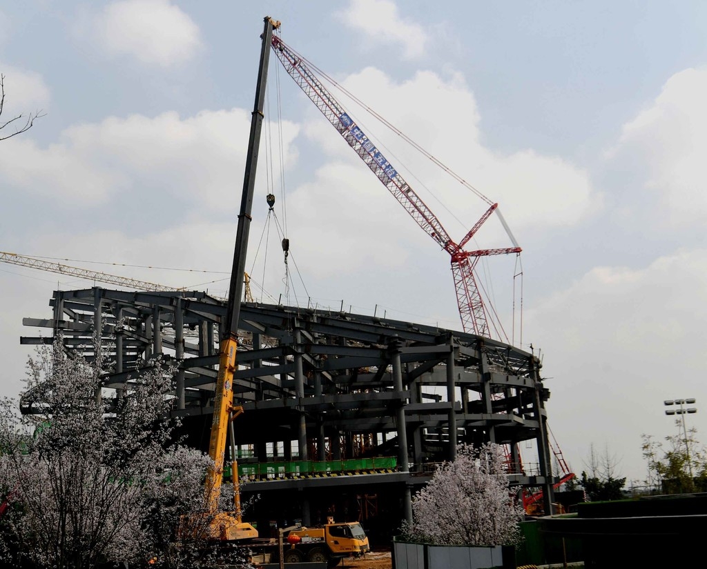 2月21日,“爱成都 迎大运”由中国五冶集团承建的成都露天音乐公园室内演奏厅项目钢结构整体建设顺利。
