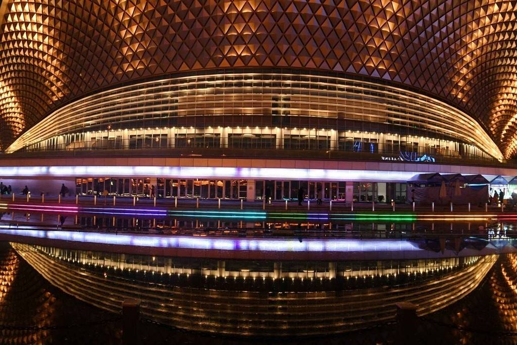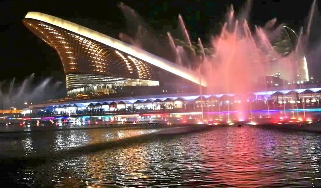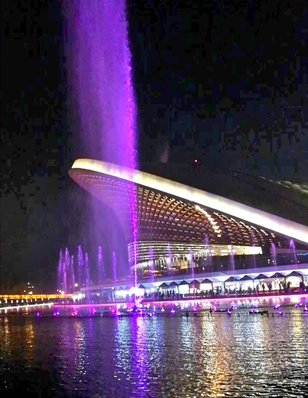 2月20日晚,成都市露天音乐公园的音乐喷泉和水景,吸引众多市民前来观看梦幻喷泉。市民们伴随着优美的音乐节奏,随之舞动。在人声鼎沸中,变幻万千的百米喷泉高耸入云,于美轮美奂梦幻中“音乐与水珠齐飞,喷泉共欢颜一色”。