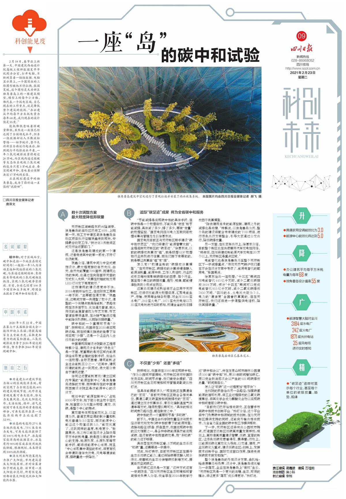 “目前我们已开始相关研究,正在着手布局碳中和技术创新平台。”杨钉介绍,这个平台将专门负责碳中和领域的技术创新,在为天府新区提供支持的同时,还能向外输出相关技术,为全省乃至全国的碳中和工作提供帮助。