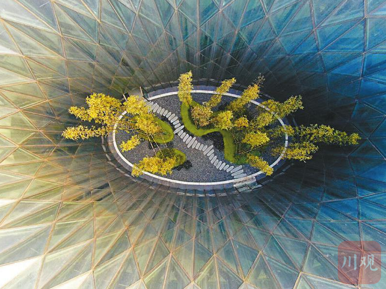 独角兽岛建筑中空处进行了景观打造并安装了雨水收集系统。记者 郝飞 摄