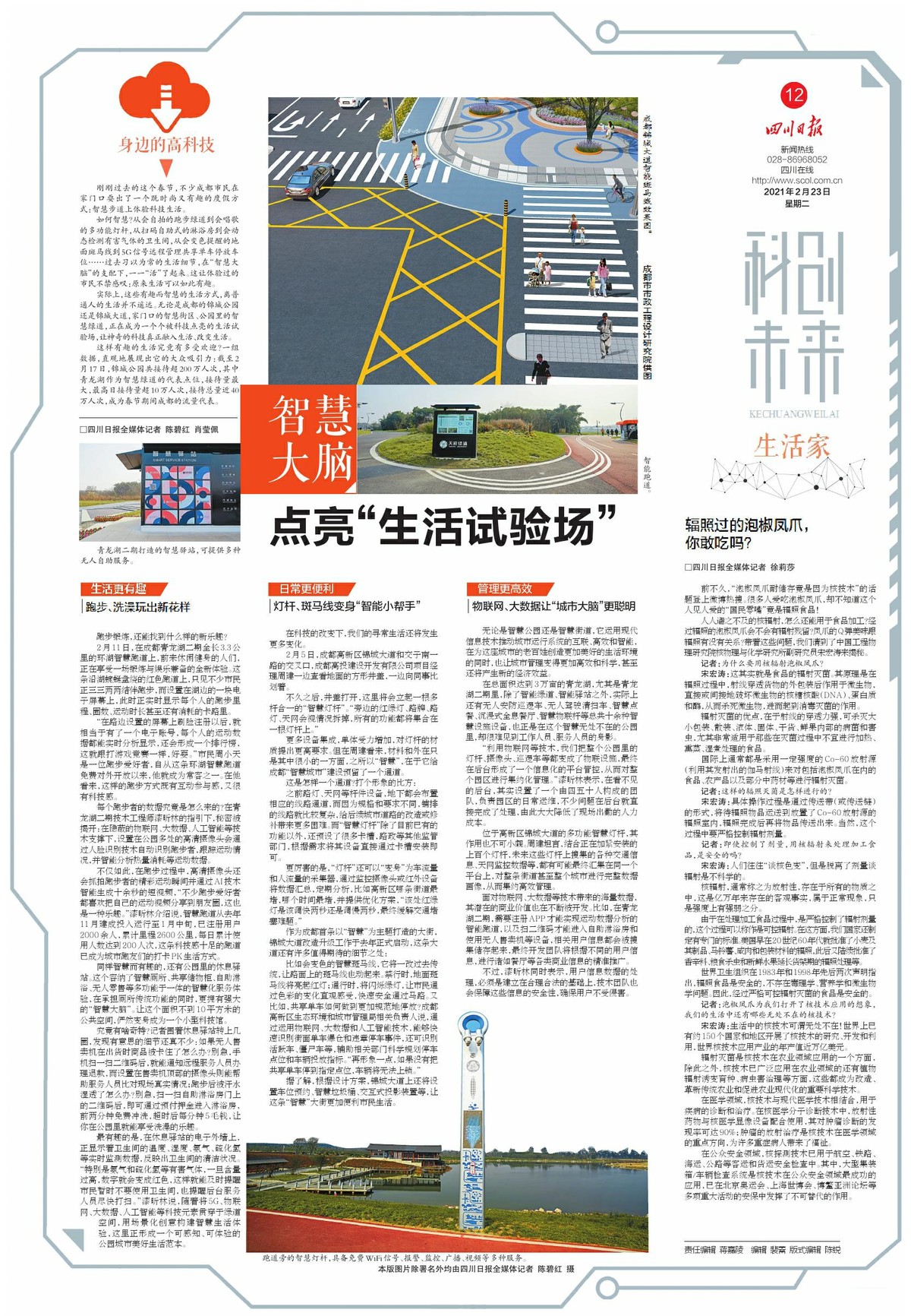 刚刚过去的这个春节,不少成都市民在家门口耍出了一个既时尚又有趣的度假方式:智慧步道上体验科技生活。