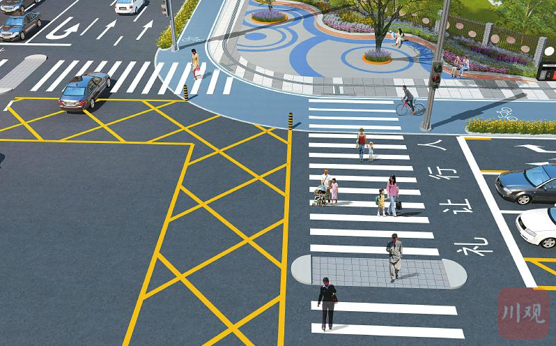 成都锦城大道智能斑马线效果图。成都市市政工程设计研究院供图