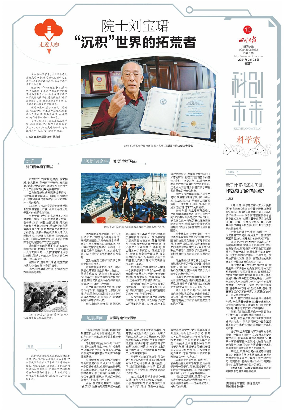 他也是这样做的。2008年,“5·12”汶川特大地震发生。一时间,对余震的恐惧让市民终日惶惶不安。时年77岁的刘宝珺在震后来到灾区勘探搜集情况。