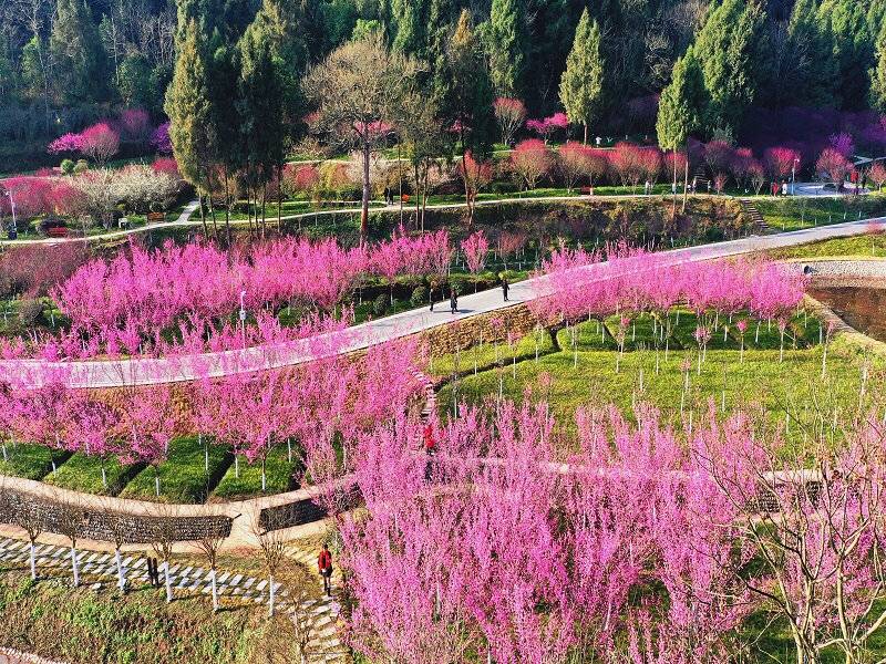 明媚二月,位于南充市西充县张澜故居景区的500亩梅花迎风绽放。为满足市民赏花需求,该县策划了“花开张澜 云游故里”系列活动,并推出2021西充“一乡一节”第一季暨莲池镇首届云上梅花节,让游客足不出户、只需动动手指,就能在“文旅西充”、微西充等平台上通过视频、图片,尽享春光、春色。