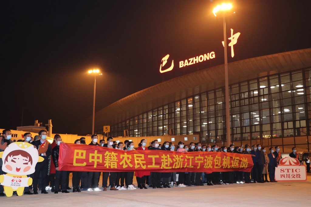 2月24日21:25,180余名巴中籍农民工从巴中恩阳机场起飞,经过约2小时航程顺利抵达宁波栎社机场。该航班是四川交投巴中恩阳机场响应巴中市政府号召,今年保障运行的首个农民工返岗包机。