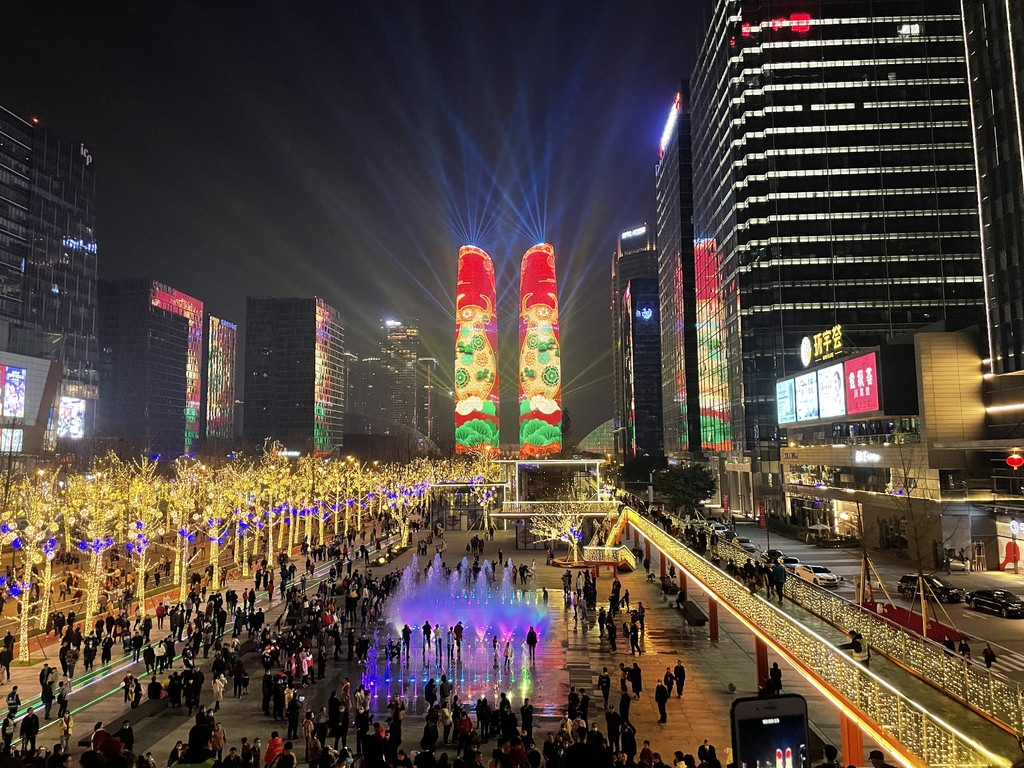 春节期间,成都高新区金融城双塔灯光秀刷爆网络。明天,灯光秀将全面升级,共迎元宵佳节。