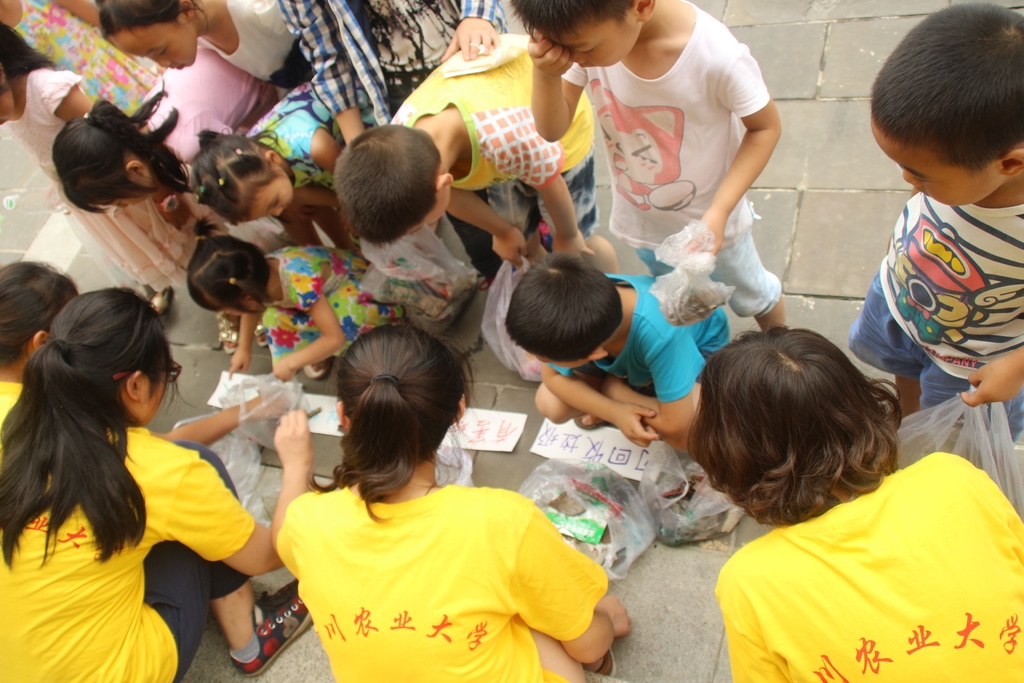 岷江村大学生利用假期教村里的孩子们学习垃圾分类。