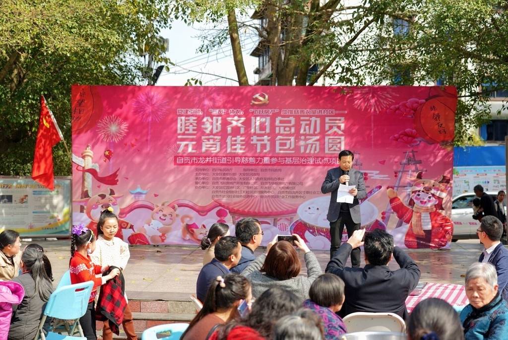 当天,龙井街道引导慈善力量参与基层治理试点项目—“睦邻齐心总动员 元宵佳节包汤圆”活动在这里举行。活动由大安区委组织部、区民政局主办,自贡市慈善总会、大安区龙井街办承办,各入驻社会组织协办,由龙井街道孵化培育的社区社会组织积极引导社区中的党员、团员、少先队员参与其中,通过学生带动父母,家庭影响邻里,同时,还举行爱心单位捐赠仪式和义拍活动,所得资金用于龙井街道社区慈善基金使用。