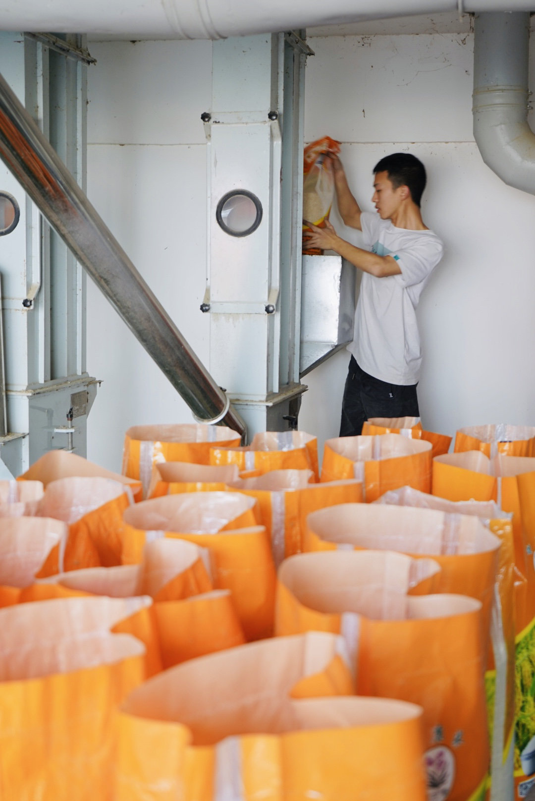 薛世兰自建的大米加工厂内,一台台筛选机、抛光机等不停运转,萦绕着一阵阵稻米香。魏冯摄