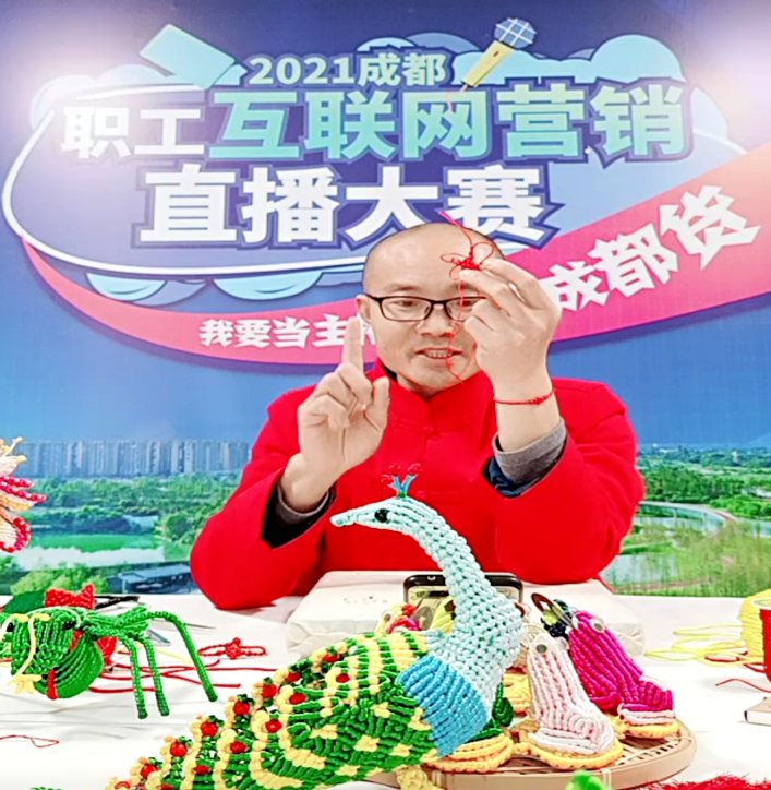 “我很高兴能够参与这次直播大赛,我希望通过直播可以引发更多人对传统手工绳编的学习兴趣,让更多本地人能够靠手艺灵活就业,同时让我们新津绳编文化走向更高更远处。”5岁时,杨文艺便跟随奶奶学习编结,绳编已然成为了他生命中重要的一部分,绳编通过杨文艺的设计创作,各种动物、植物、室内装饰挂件等等被编制得栩栩如生。