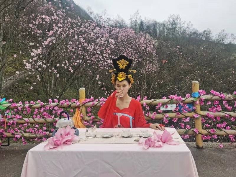 本届辛夷花节的特色之一在于“古树”,游客不仅能在花溪景观赏到树龄百年以上的辛夷古树,还能近距离观赏释比神树祈福、羌笛、羌绣等古老的非遗文化展演。为此,还为游客打造了一场典雅、创意十足的“辛夷花神巡游”。身着辛夷花服饰的妙龄美女和辛夷花相衬,与游客们亲密互动、合影,又无疑是一道靓丽的风景线。