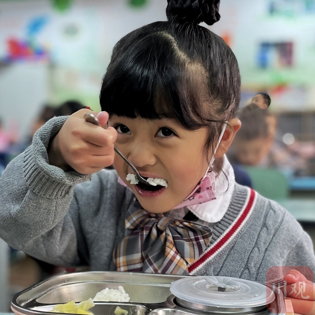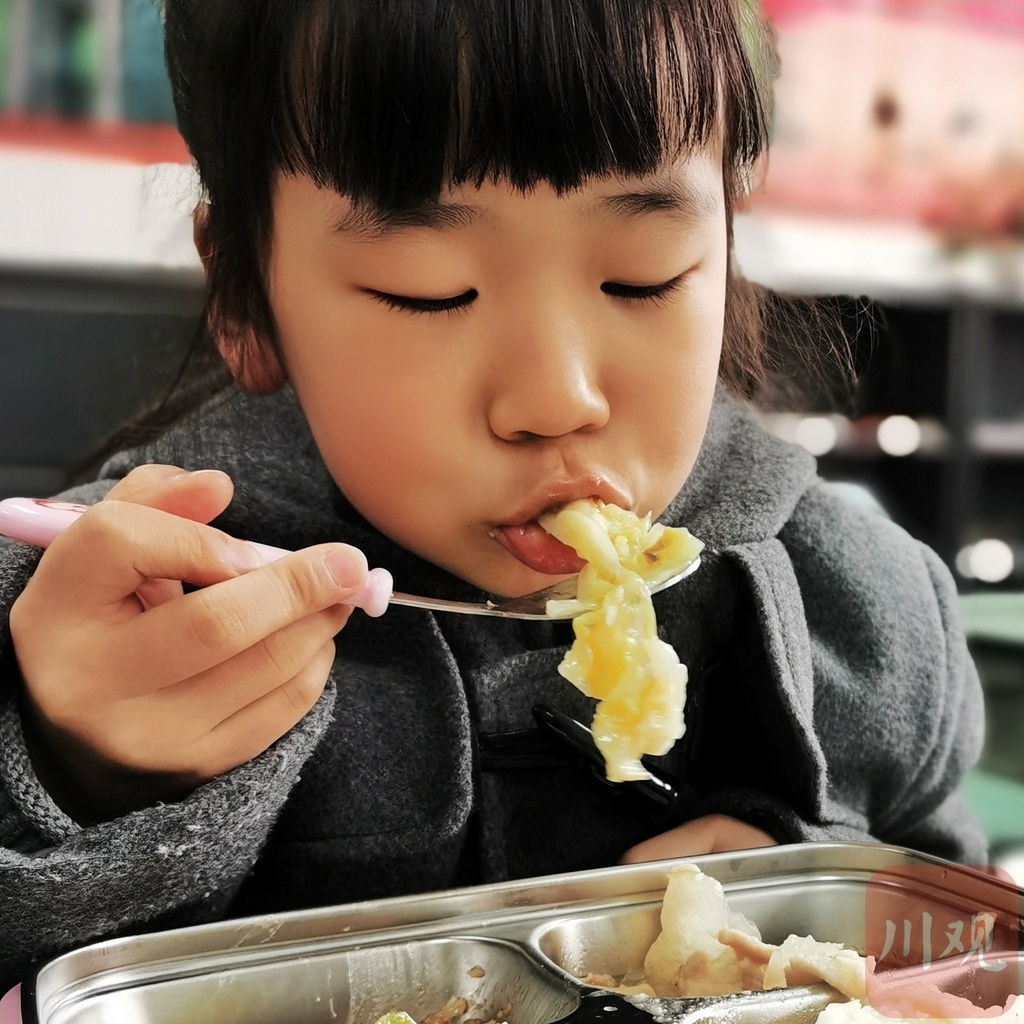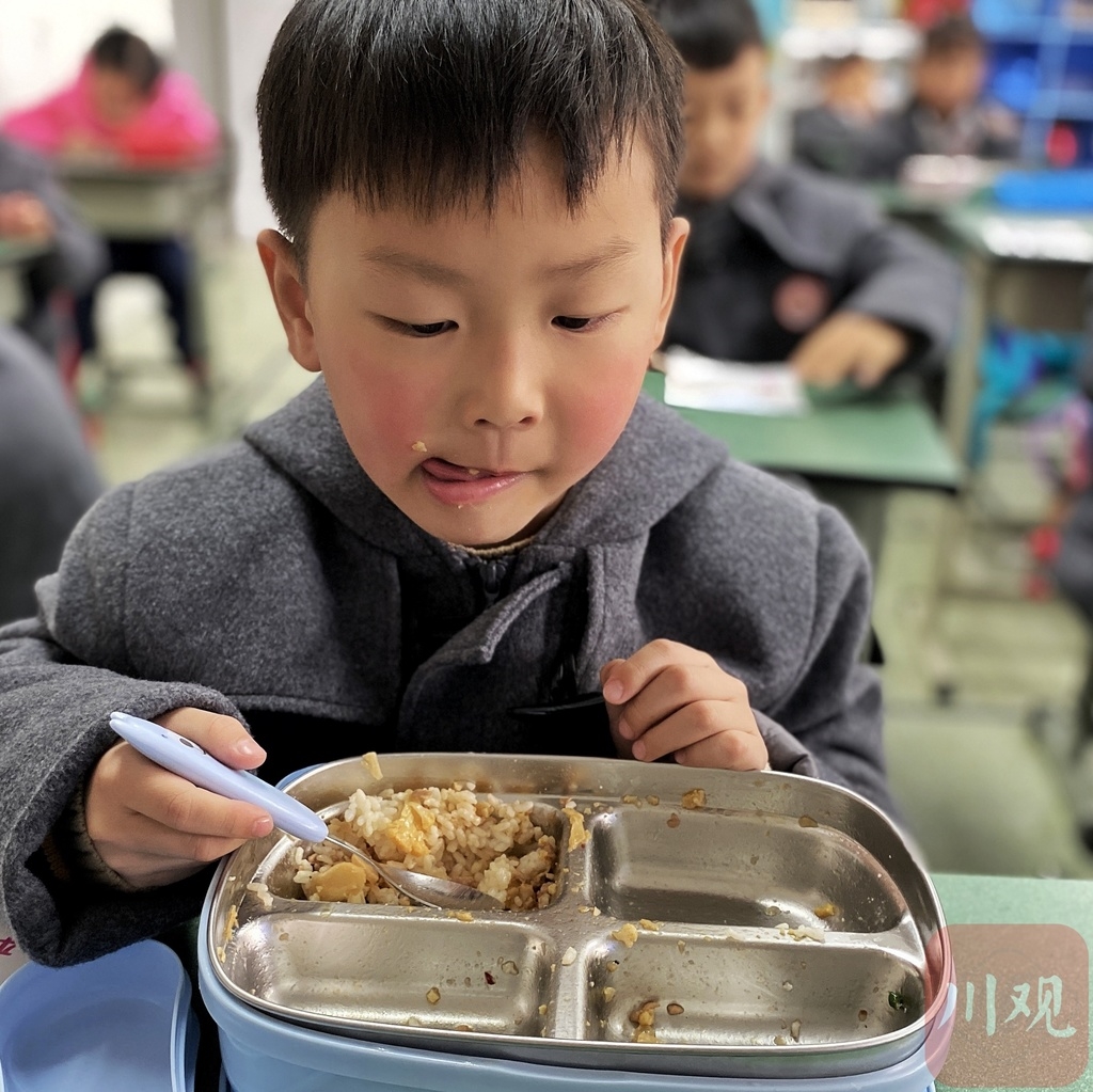 盐道街小学卓锦分校午餐时,冬瓜酥肉、炝炒莲白、碎肉花菜,久违了开学第一餐。