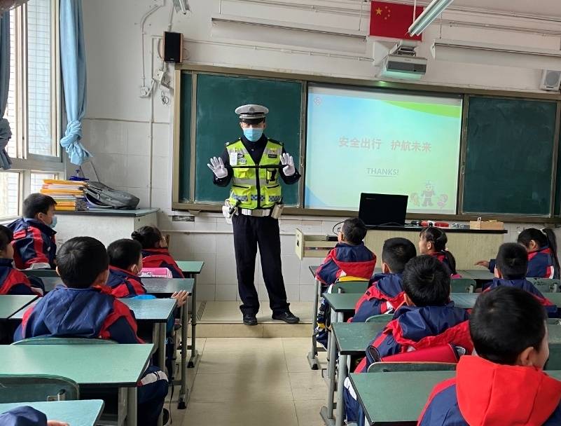 在辖区各中小学、幼儿园,交警二分局交警做好学校门前及周边道路交通保障,安排警力加强对辖区道路巡逻管控和疏导,设置学校护学岗,确保学校周边道路通行秩序良好。同时组织交警深入课堂,上好“交通安全课”,大力开展交通安全主题宣传教育活动。