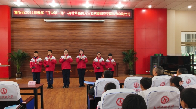 “不能携带火源进山”“不要在野外生火玩火”“发现森林火灾,要拨打12119森林防火报警电话”……3月1日15时,在雅安市雨城区太平实验小学,200余名师生同上2021年春季开学“安全教育第一课”。