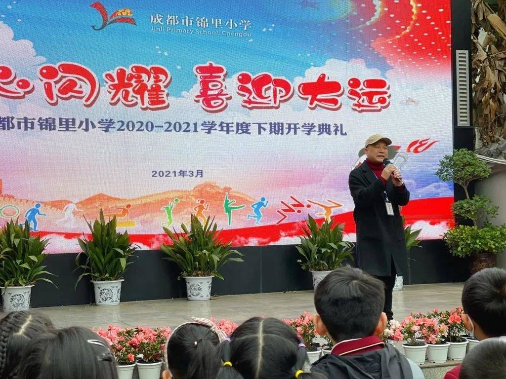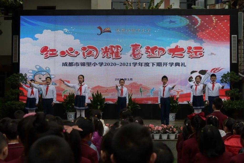 3月1日上午,成都市锦里小学全体师生齐聚校园,隆重举行2020-2021学年度春季开学典礼,嘹亮的国歌拉开了典礼的序幕。