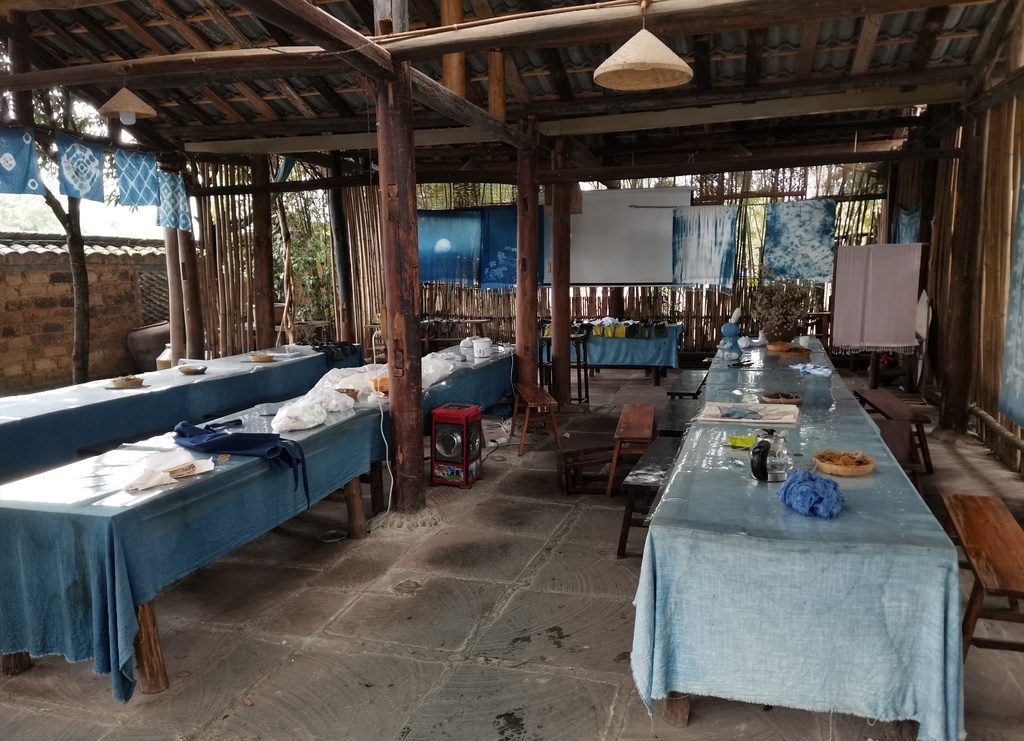 成都市蒲江县甘溪镇明月村,村民将农房改造成“岚染工坊”。