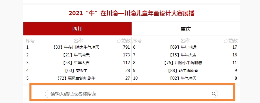 提示:找到作品名称前编号,在投票页面搜索框搜索作品编号,快捷定位到该作品↓↓↓
