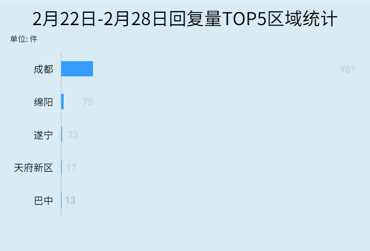 截至3月1日零时,根据留言量和回复量的比值,上周排名靠后位的区域为: