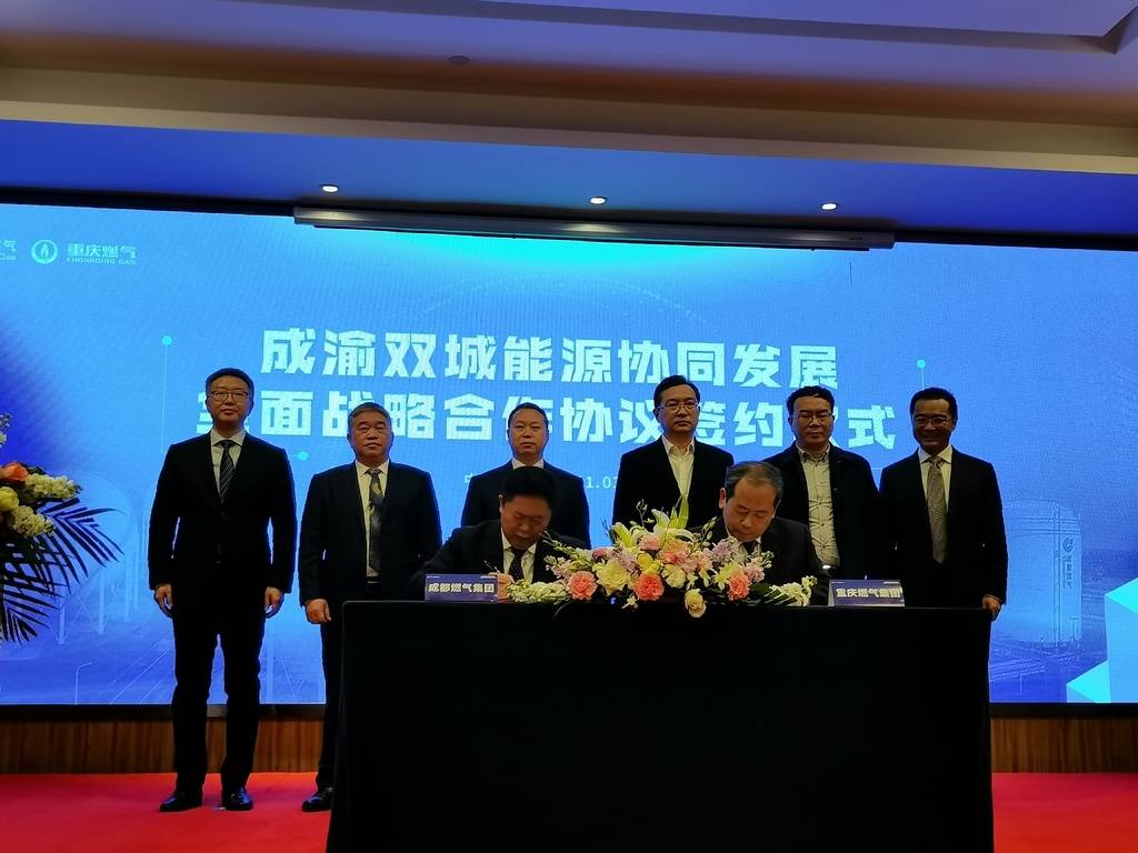 3月3日,成都燃气集团党委书记、董事长罗龙与重庆燃气集团党委书记、董事长王颂秋在重庆共同签署《成渝双城能源协同发展全面战略合作协议》。
