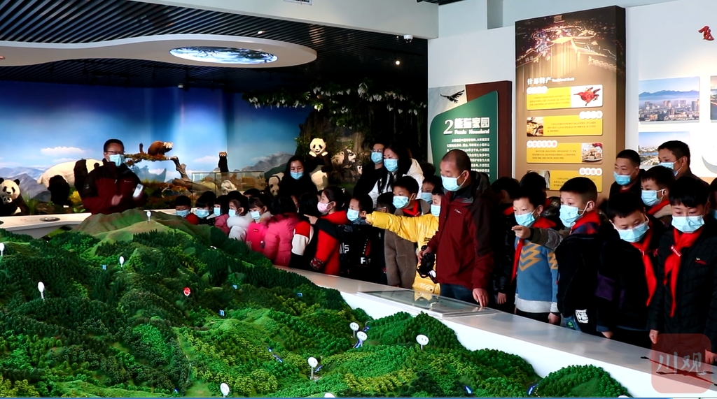 憨态可掬的大熊猫,顽皮可爱的金丝猴……走进科普宣教中心,仿真动物模型让孩子们眼前一亮。自然教育老师结合大熊猫国家公园德阳片区建设,以大熊猫等珍稀野生动植物及栖息地环境为切入点,开展了自然教育课程。
