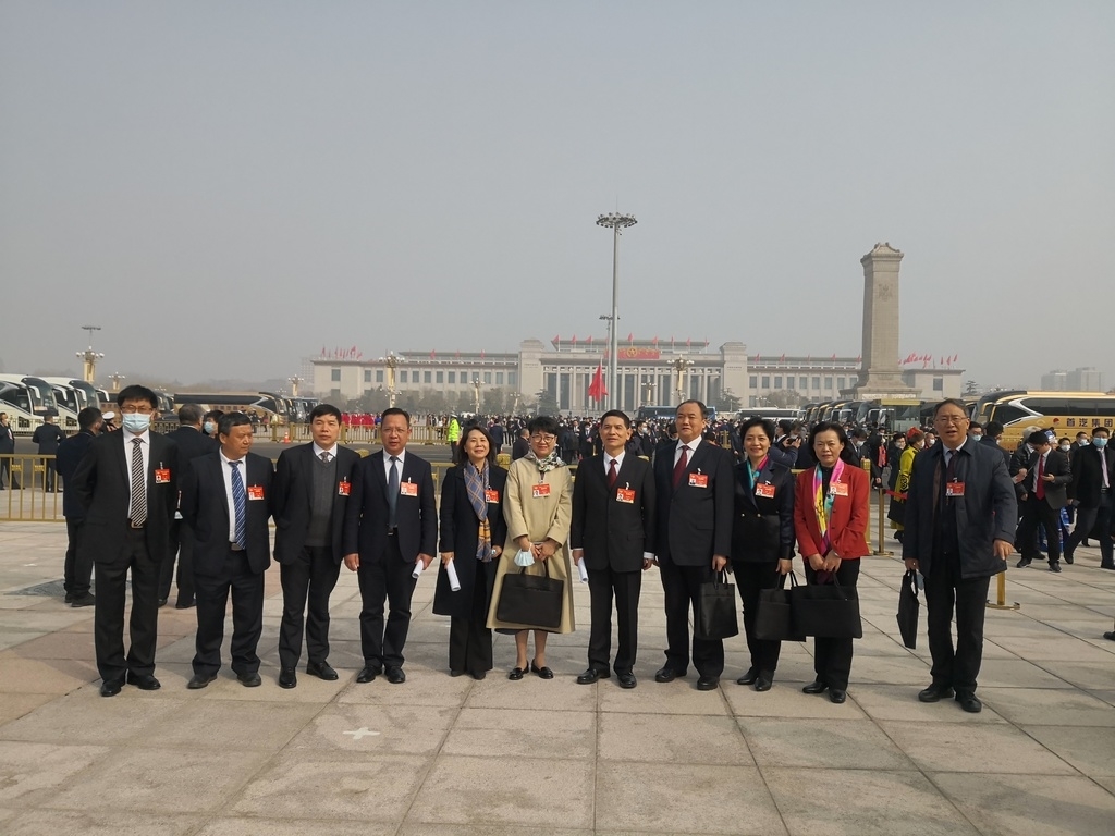 3月4日15时,全国政协十三届四次会议在北京开幕,听取中国人民政治协商会议全国委员会常务委员会工作报告。在即将步入人民大会堂之前,部分住川全国政协委员合影留念。