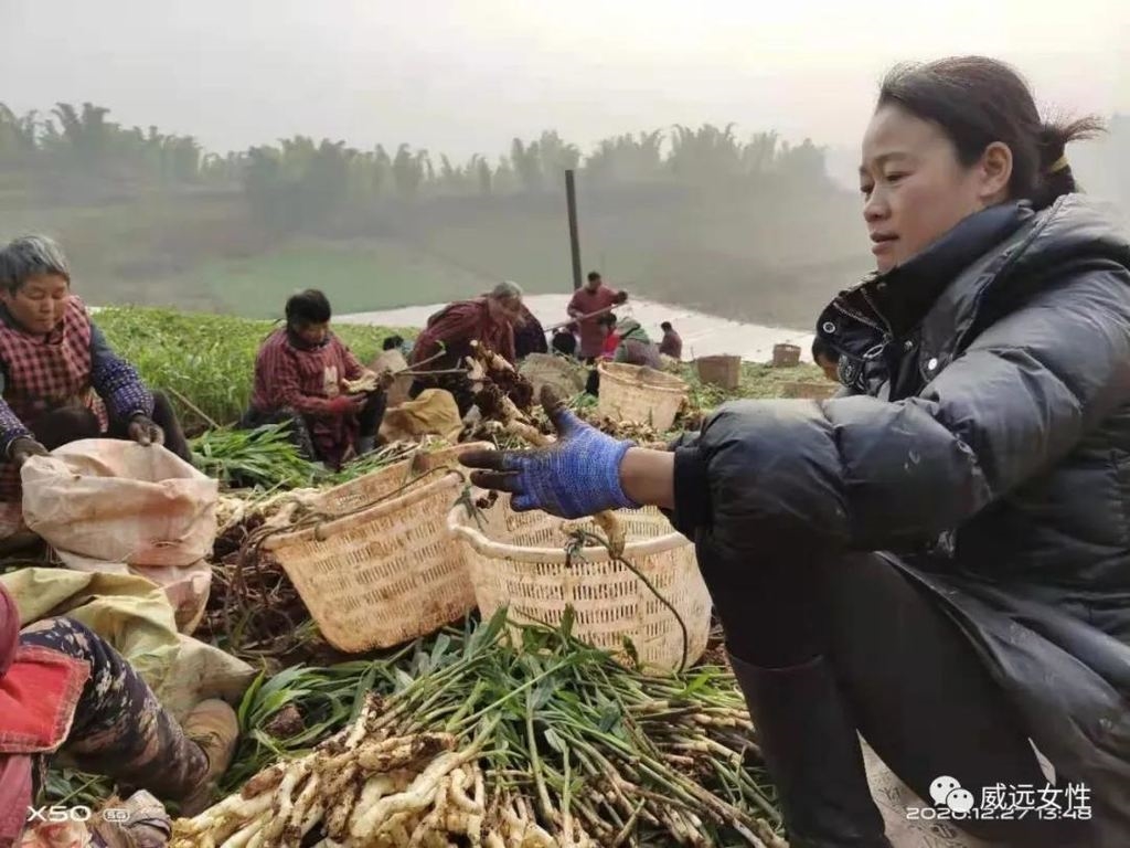 在威远县新店镇民富村,一幅收获生姜的热闹场景引人关注,在姜田中劳作的人群中,有一个美丽的身影。她就是威远县新店镇民富村党支部书记、妇联主席刘红,被村民亲切地称为“生姜书记”。