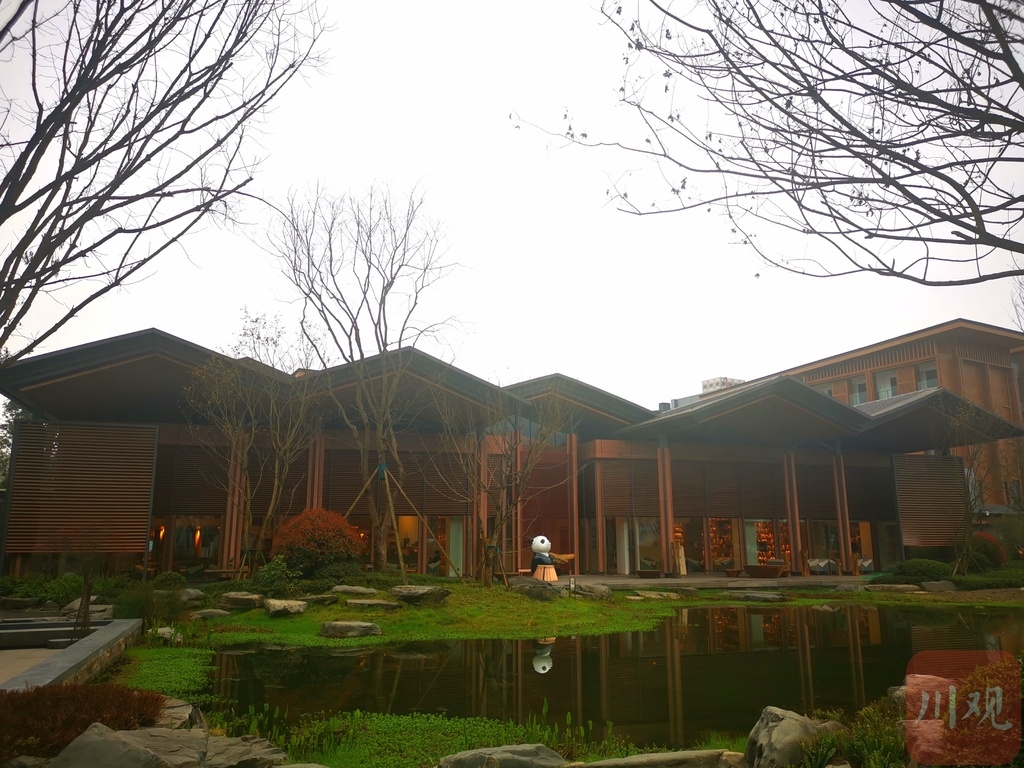 “最传统的川西民居屋顶采用砖瓦铺设,但砖瓦铺设不太适应现代社会的需求,所以我们用现代建筑常用的铝板进行了替代。”张南洁说,“砖瓦”并没有完全被舍弃,而是被用到了书院的景观布置中,这个水池的池底,就是用砖瓦铺设的,“形式上借鉴中式,材料上使用新材料,这其实就是新中式风格的基本理念。”