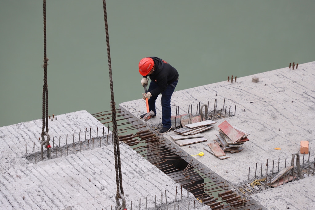 在峨轸路改造提升工程暨骑游道建设工程(雪山村大桥段)施工现场,记者看到,工作人员正在吊装预制桥梁,安装完一个梁板后紧接着又进行下一个梁板安装。据悉,该大桥将于今天之内完成梁板安装。与此同时,峨轸路道路交安设施安装也在有序推进。