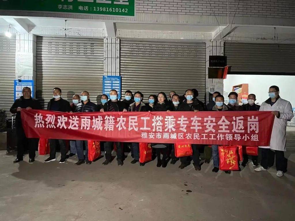 这是雨城区第二批护送农民工跨省返岗的专车。春节以后,雨城区重点突出农民工疫情防控和促进节后务工返岗两项关键工作,开行“春风行动”返岗专车,全力保障农民工安全过节、顺利返岗。