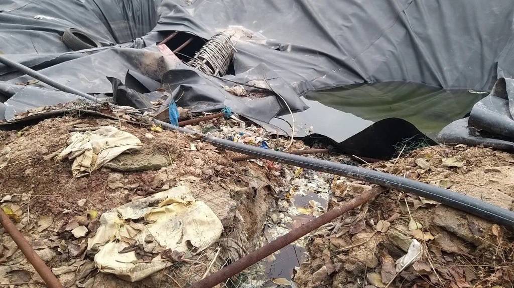 邻水县垃圾填埋厂雨水导排沟堵塞、覆膜破损