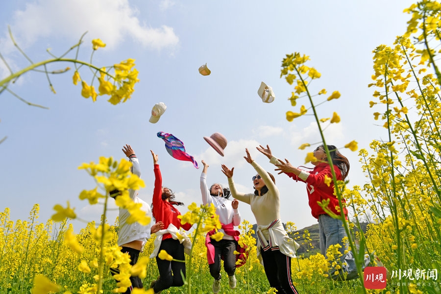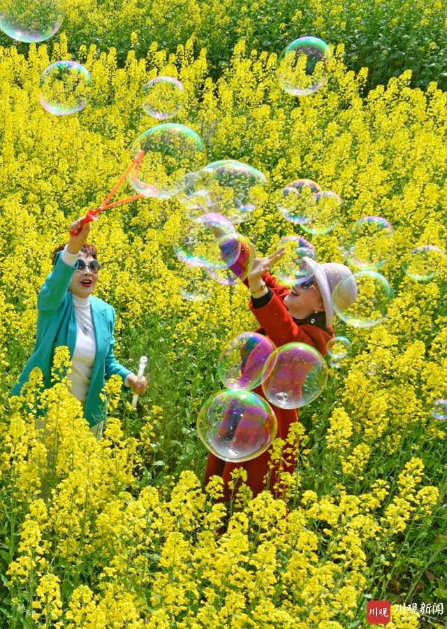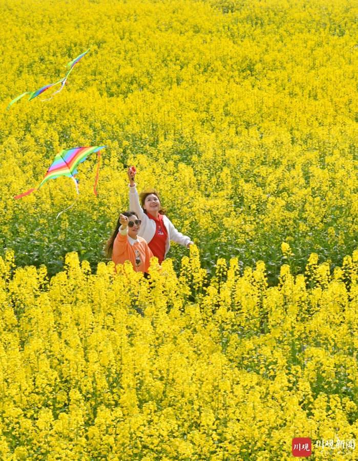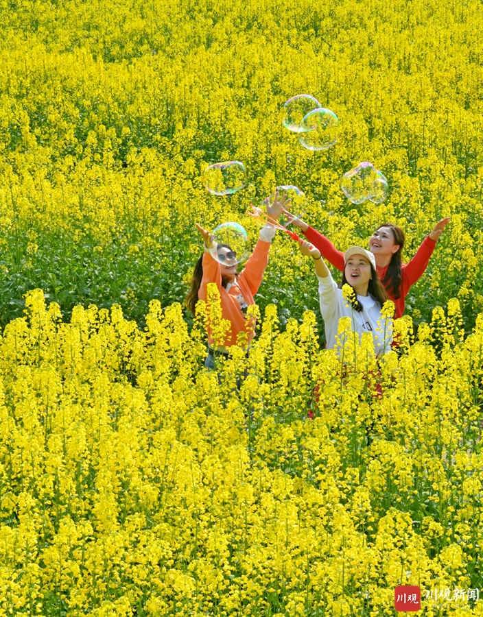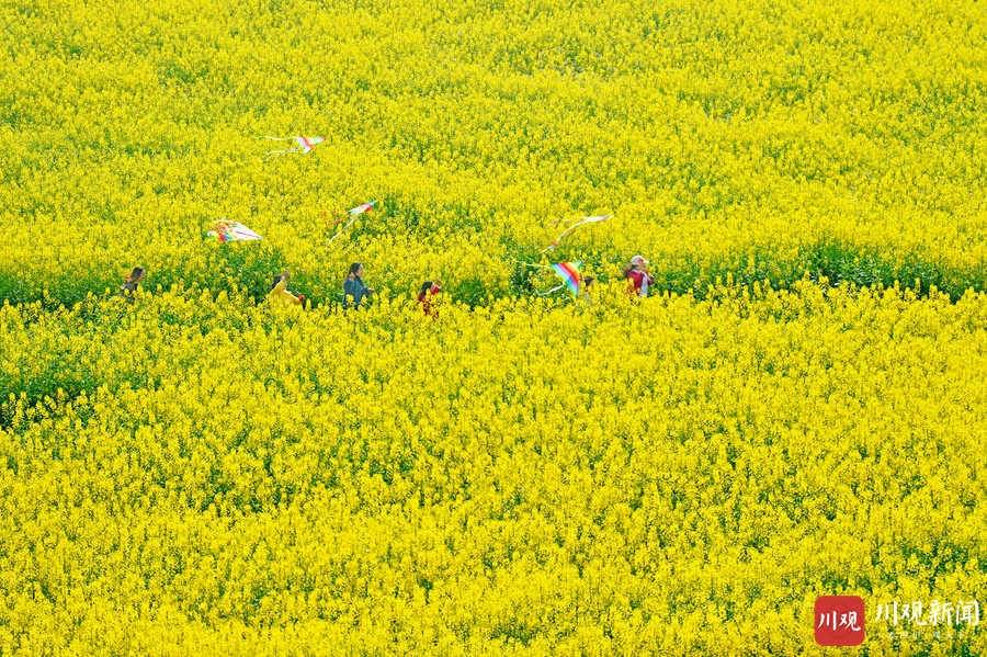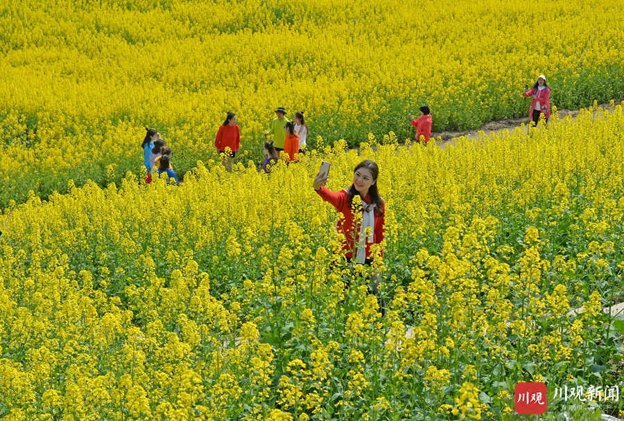 2021年3月4日,武胜县万善镇吊楼村昔日撂荒的滩途地被次第盛开的油菜花染成一片金色,把乡村装扮得分外绚丽多彩,吸引了许多市民前来踏青赏花。