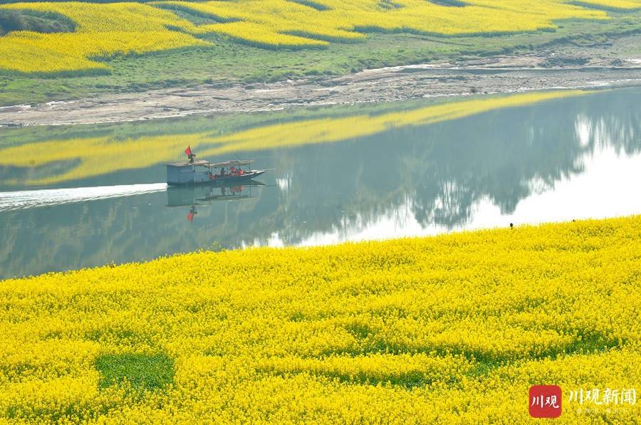 武胜县在实施乡村振兴工作中,以土地流转、托管经营、招商引资三种方式,对境内的嘉陵江沿江乡村撂荒的滩涂地进行综合开发,并以专业合作社+农户+村集体的经营模式,发展油菜、菜玉米、萝卜等,实现了适种地块应种尽种和赏花旅游经济。目前,沿江乡村种植的油菜花开正盛,金灿灿的油菜花美了乡村、乐了市民、富了村民。