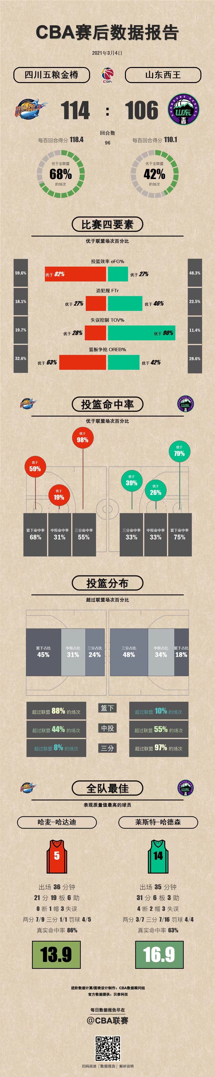 3月4日,四川男篮与山东男篮上演CBA常规赛第41轮对决。最终,四川延续了连胜的势头,以114比106战胜山东,豪取6连胜。