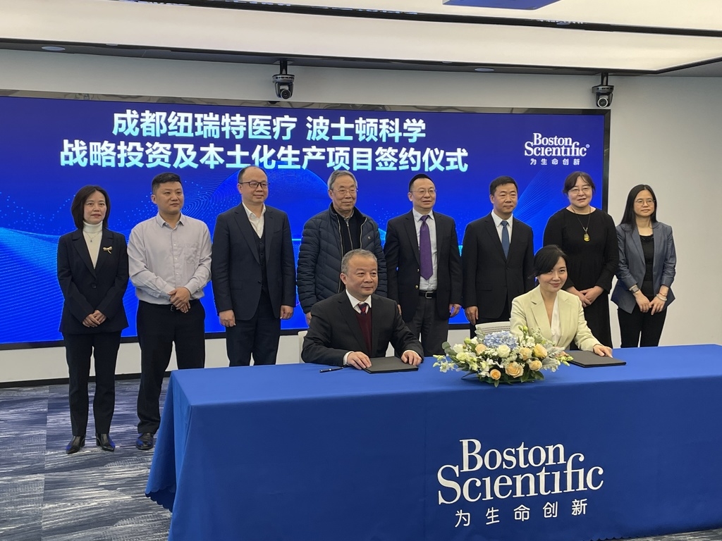 3月5日,全球领先的创新医疗科技公司波士顿科学与成都纽瑞特医疗科技股份有限公司就股权投资、技术转移与本土化生产签署合作协议,建立全方位的战略合作伙伴关系。这是波士顿科学首次与中国本土企业合作进行技术转移和本土化生产,标志着波士顿科学加速本土化进程、深化西部战略布局的重要里程碑。