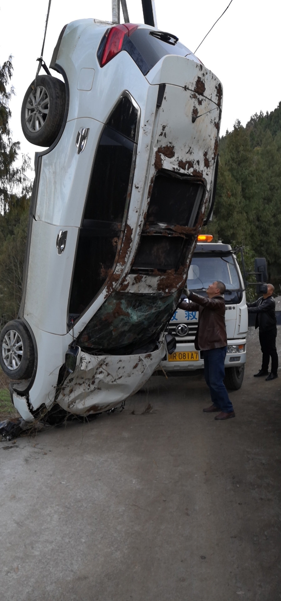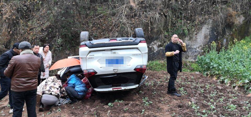 2月13日中午12时10分左右,阆中石龙社区洪龙村22组一村道处发生一起单方交通事故。驾驶员李某某驾驶川R1N***轿车不慎翻入大约8米高悬崖,造成驾驶员李某某当场昏迷,车上搭乘亲属,包括小孩共5人。附近村民听到呼救声和一片哭声。此时,正在家中准备吃饭的辅警鲜钧磊也听见呼救声,立马赶赴现场,只见一辆白色轿车“四角朝天”翻倒在农田地里,驾驶员李某某受伤一直处于昏迷不醒状态,其余人员均平安无事。