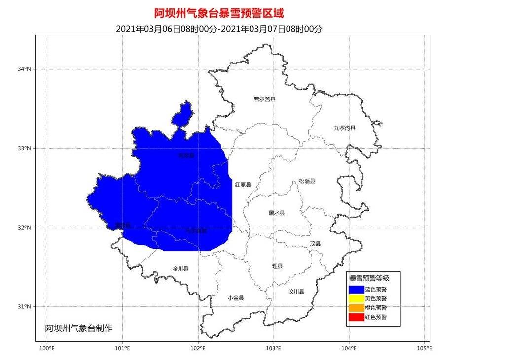 3月6日凌晨,阿坝州气象台再次发布暴雪蓝色预警。