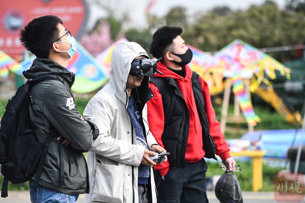 3月6日下午,成都东郊七彩田野上演了一场穿越机飞行秀,四十多位来自川渝的川观拍客在这里集结,体验新型FPV无人机。