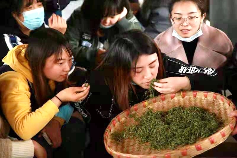 大家来到茶园,在采茶工的指导下亲自动手采摘新芽,体验绿茶杀青、揉捻、干燥、精选等手工制作工艺。用制成的新茶,进行茶艺比赛。