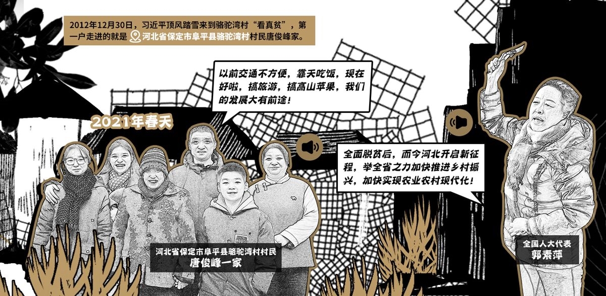 “以前交通不方便,靠天吃饭,现在好啦,搞旅游,搞高山苹果,我们的发展大有前途!”河北省保定市阜平县骆驼湾村村民唐俊峰发出这样感叹。
