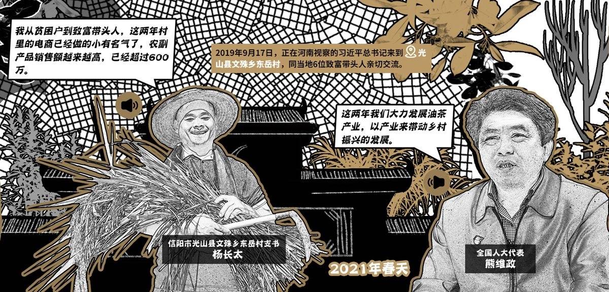 “我从贫困户到致富带头人,这两年村里的电商已经做得小有名气了,农副产品销售额越来越高,已经超过600万。”河南信阳市光山县文殊乡东岳村支书杨长太对乡村振兴充满希望。