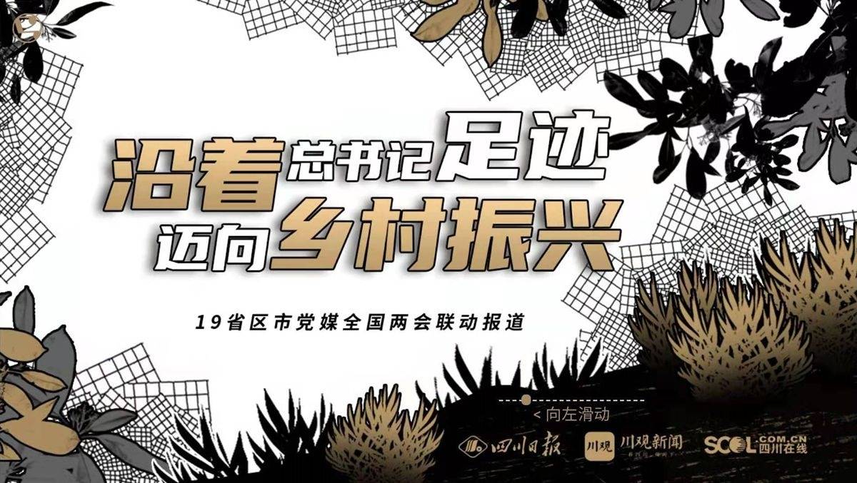 由四川日报·川观新闻策划发起,联合19家省区市媒体推出实景手绘创意互动音频H5报道《沿着总书记足迹 迈向乡村振兴》,沿着总书记曾经踏过的足迹,重访当年的贫困家庭和当地全国人大代表,看山乡巨变、乡村振兴,生动展示群众脱贫奔康的心声。