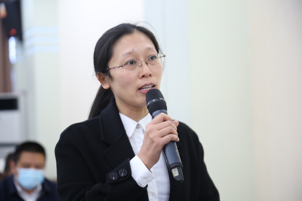 3月5日,合江县纪委十三届六次全会召开,县纪委委员符芳向述责述廉者提问(郭志达 摄)
