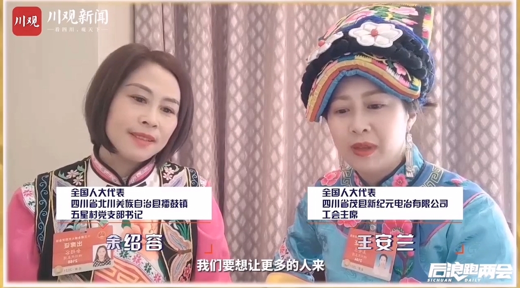 全国人大代表、四川省茂县新纪元电冶有限公司工会主席王安兰:现在游客是越来越多,我们要想让更多的人来,是不是要把路修得好一点呢?