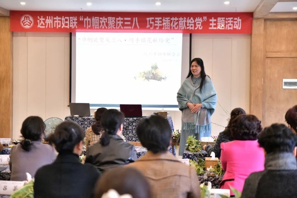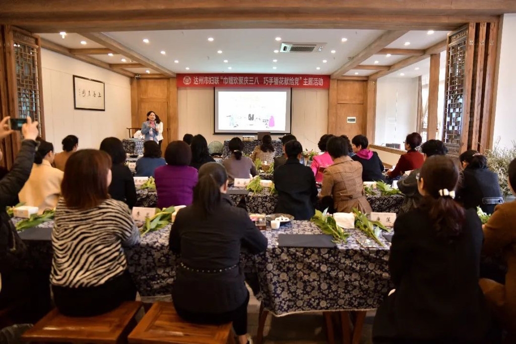 为庆祝第111个“三八”国际劳动妇女节,3月5日上午,达州市妇联举办了“巾帼欢聚庆三八 巧手插花献给党”的主题活动。活动当日,来自市级机关企事业单位共40余名女干部代表参加了活动。活动现场花香四溢,充满了温馨、祥和的氛围。