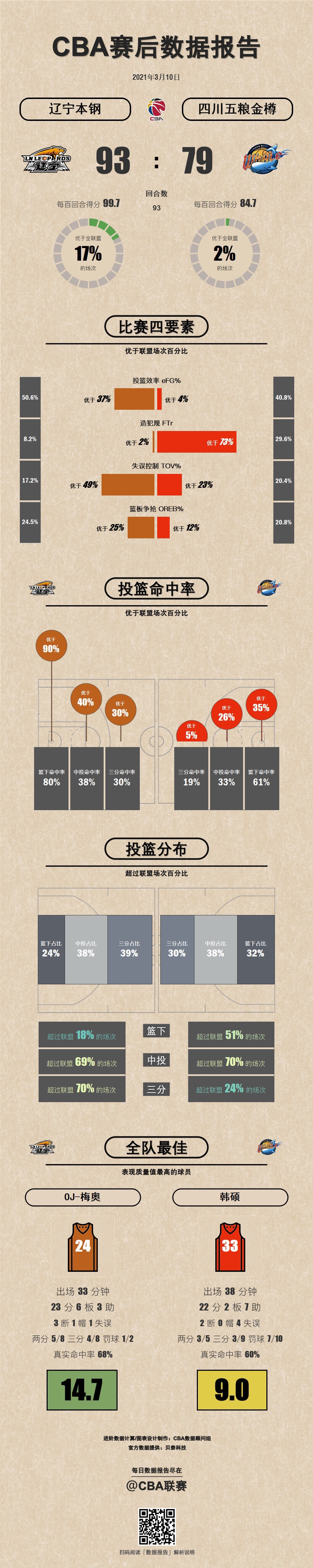 3月10日,CBA常规赛第44轮,四川男篮对阵辽宁男篮。在春节之前的CBA第二阶段,四川男篮曾爆冷拿下辽宁男篮,并一路过关斩将升至联赛第六名,这支川军也被外界评价为本赛季绝对“黑马“。如今两队再次相遇,辽宁并没有让四川再次拿走胜利,以93比79战胜四川队。